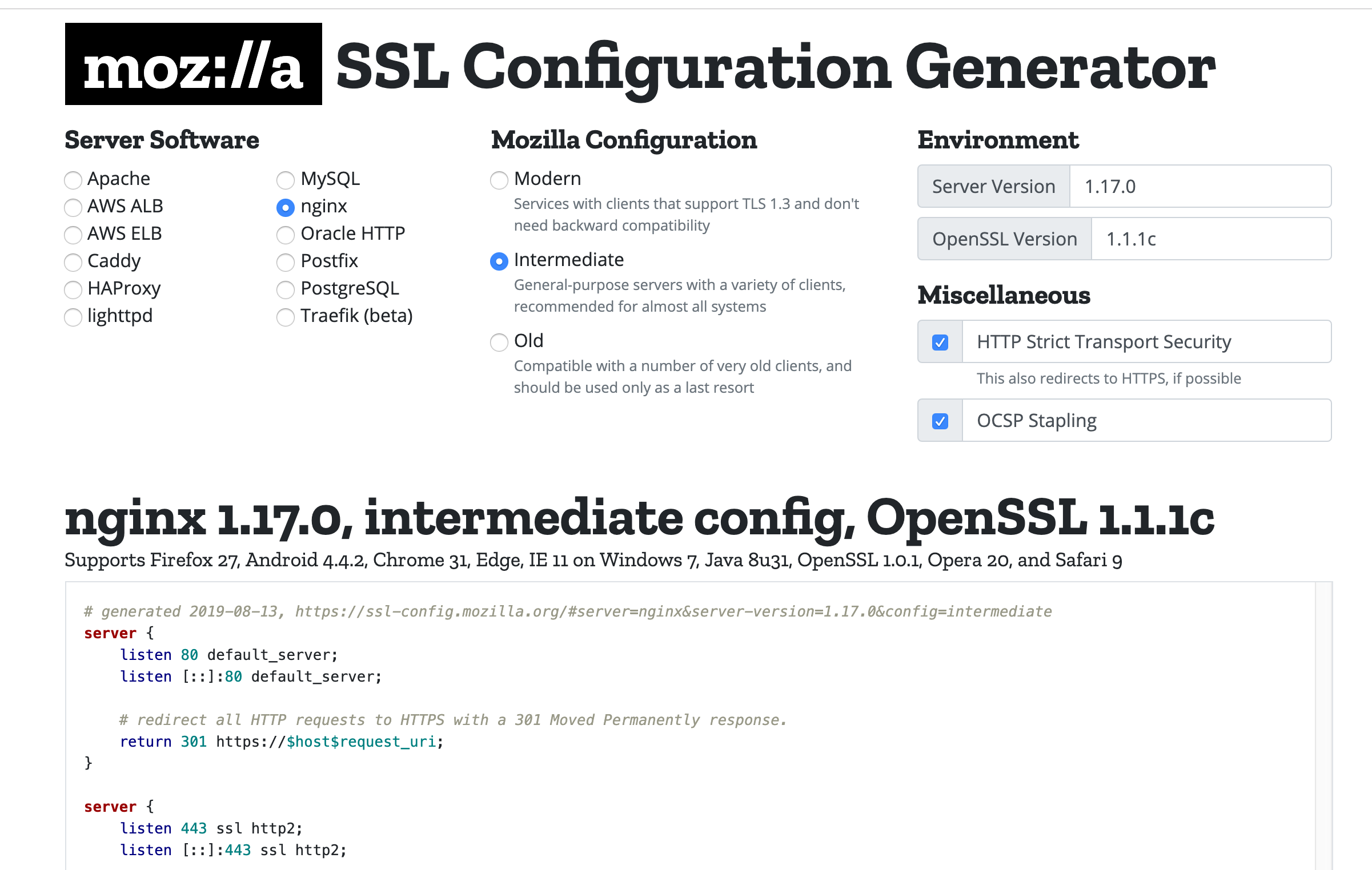 若我们自己添加的话,可参考Mozilla给出的SSL配置最佳实践