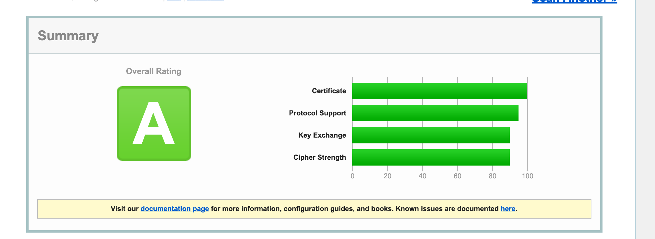 至此,我们基于Let's Encrypt和nginx 的HTTPS便部署完成了。我们可以使用[Qualys SSL Labs]来全面的测试下我们的网站,如下: