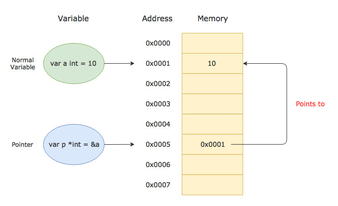 p = &i // p指针指向i,或者说将 i 的指针赋值给p