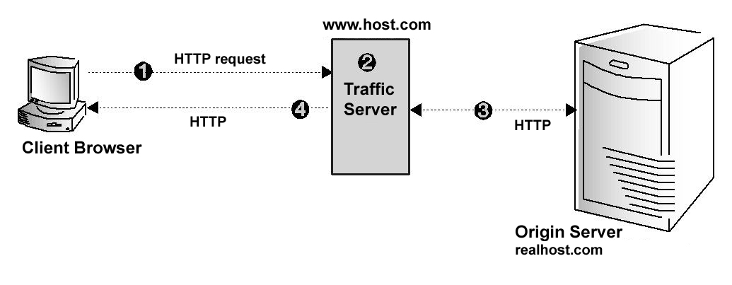 接收用户直接发往 web server(源服务器)的 web 内容请求。如果 Traffic Server 包含请求的内容,它将直接提供服务。如果请求的内容不在缓存里,Traffic Server 将作为一个代理:为用户从源服务器取得请求的内容,并在本地保存一份拷贝以服务于将来相同的请求。