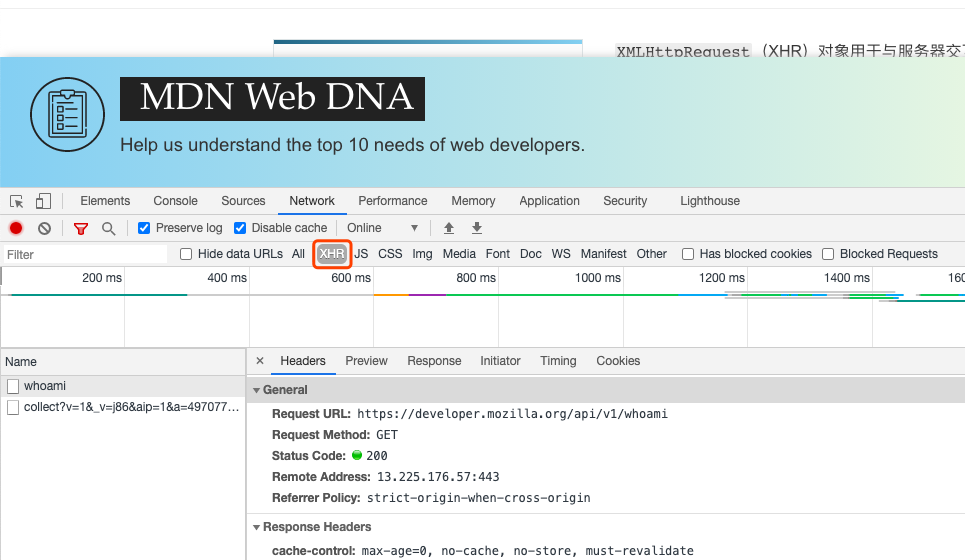 XMLHttpRequest(简称XHR)对象用于与服务器交互。通过 XMLHttpRequest 可以在不刷新页面的情况下请求特定 URL,获取数据。除了浏览器的地址栏,浏览器和后端交互(通常是javascripts控制)都是通过XHR对象,在浏览器的console中可以看到XHR的请求。