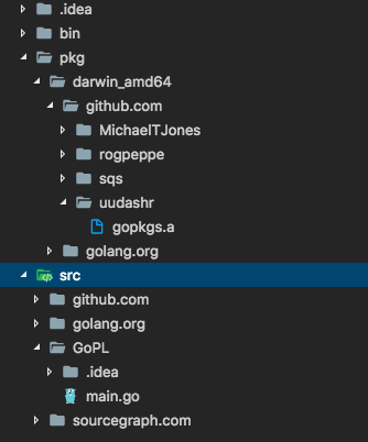 - pkg 用于存放归档文件,以 .a 为后缀的文件,存放在相关平台目录下,同样以代码包为组织形式。 目录结构为: